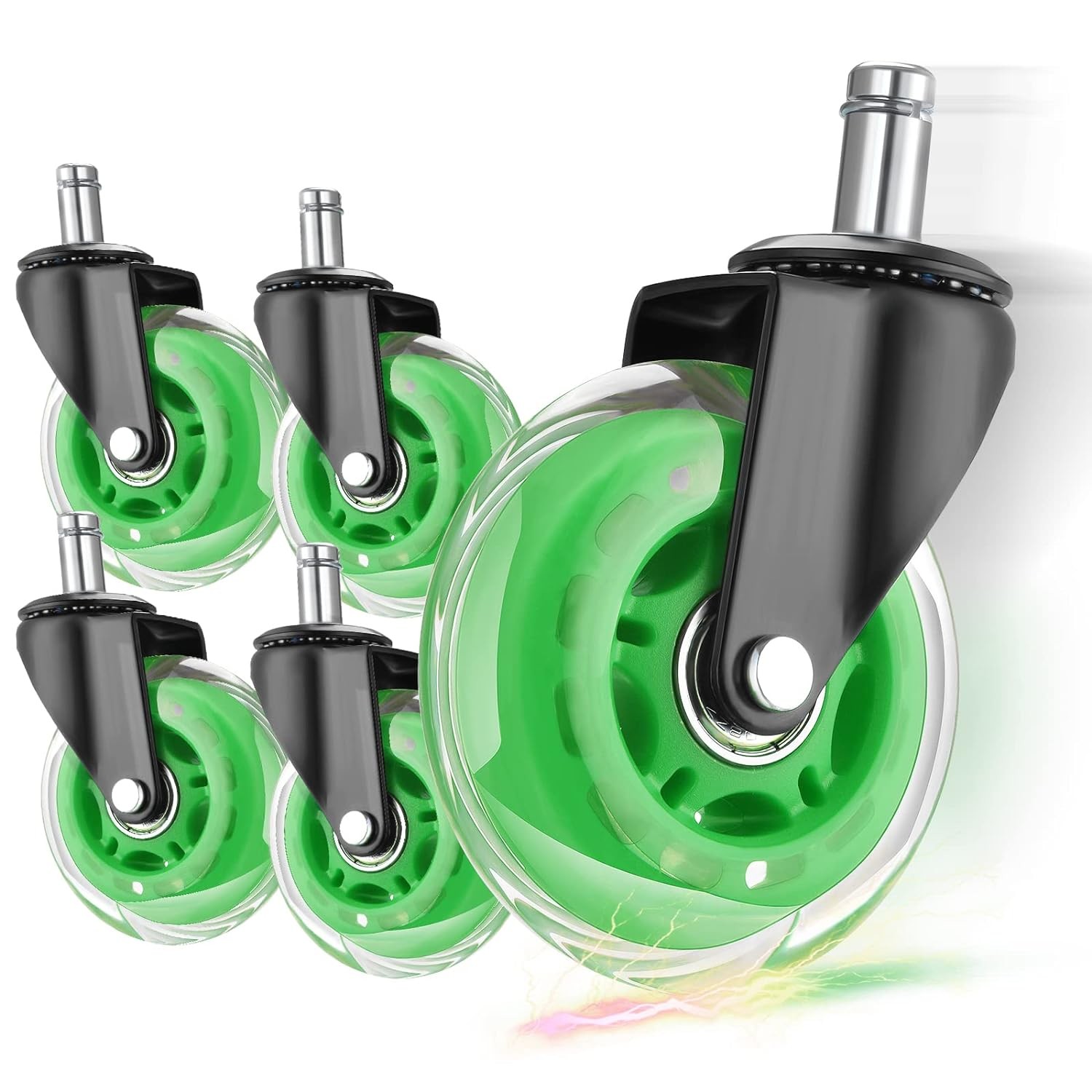 Harika Mobilya Çubukları Yeşil 5 A Set PU Malzeme Ofis Sandalyesi Çubuk Tekerlekleri